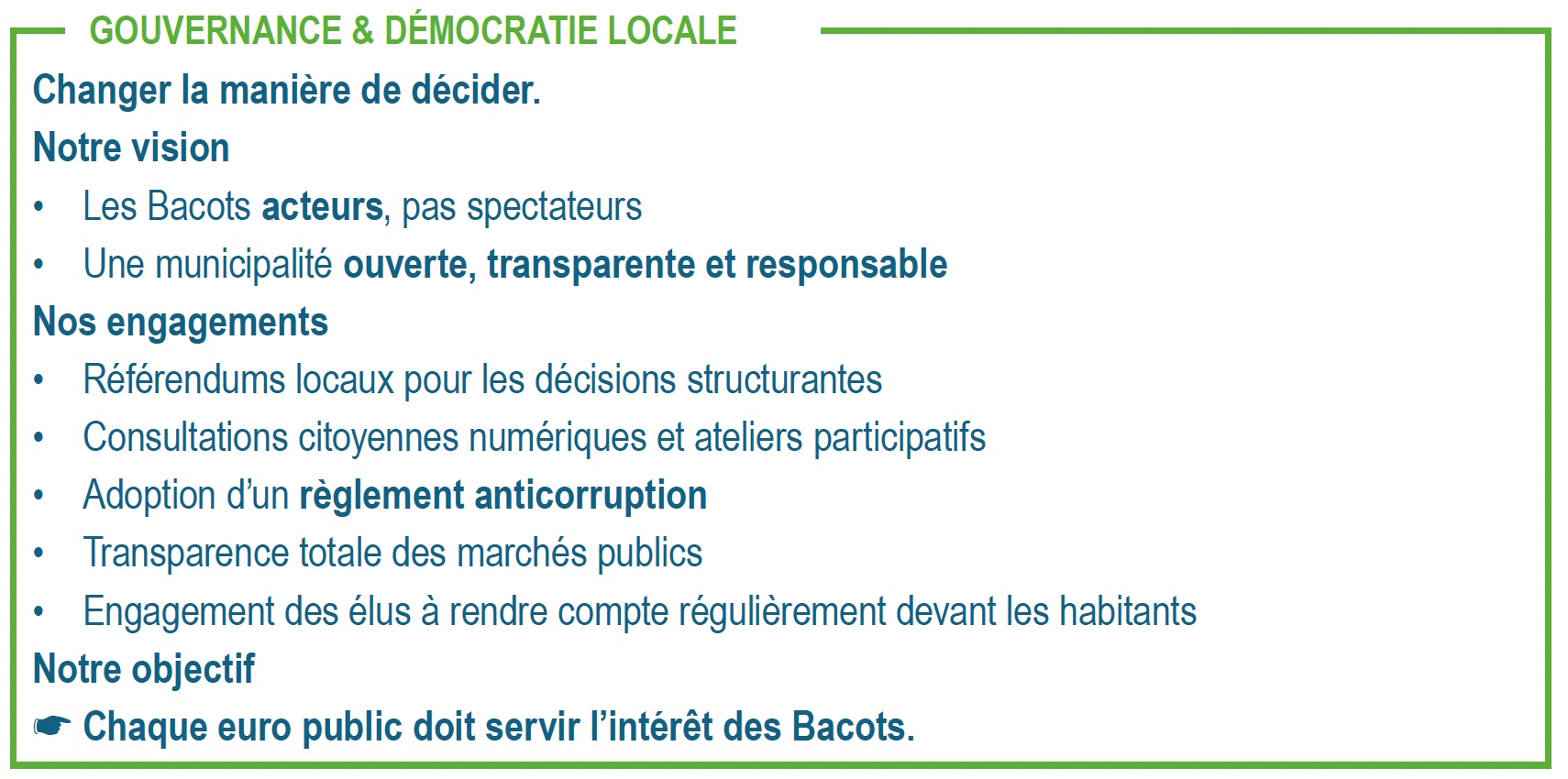 - Notre proposition : un projet de bon sens, au service des Bacots