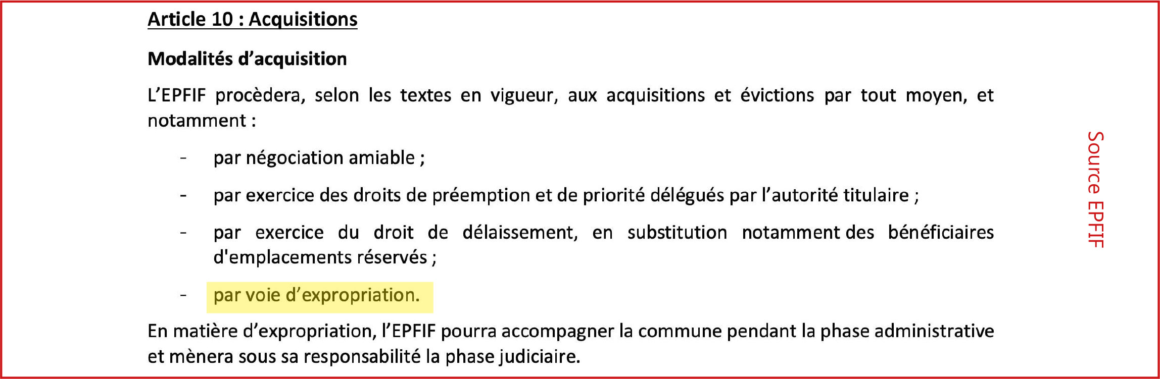 acquisitions et évictions par tout moyen, et notamment... par voie d’expropriation.