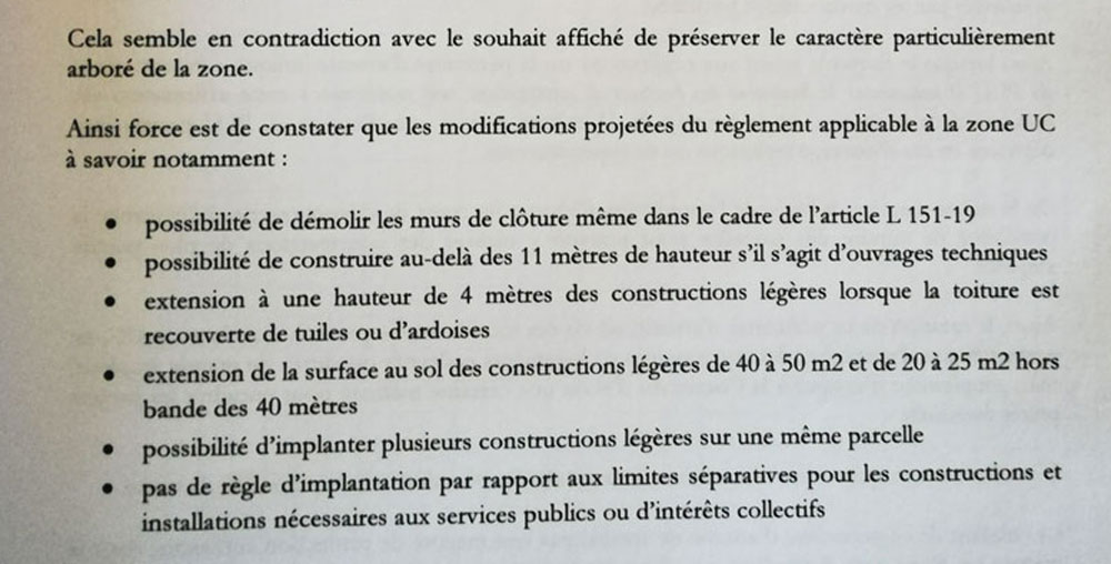 Nous ne sommes donc pas seuls à juger sévèrement le projet de modification du PLU présenté par le maire.