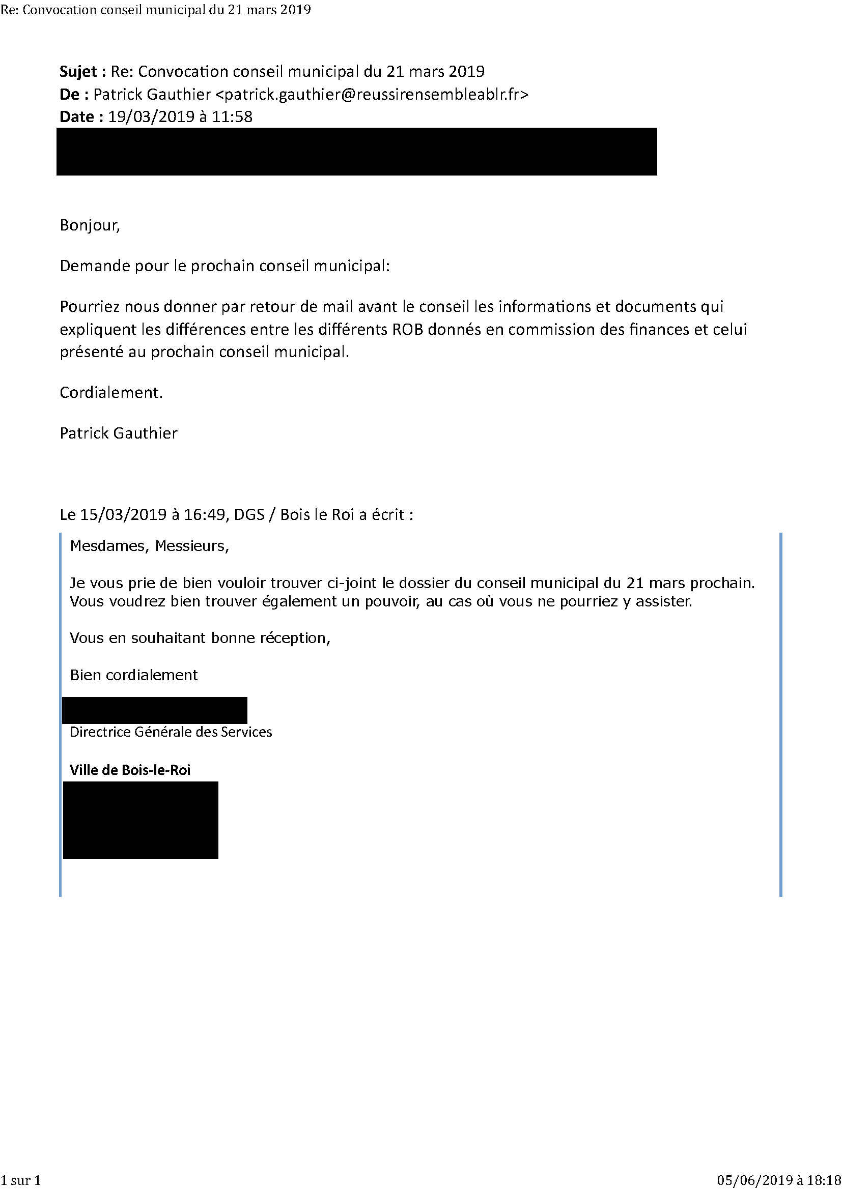Cela nécessite d’avoir des ordres du jour accompagnés des documents correspondants, de les fournir sur simple demande s’ils ont été oubliés. Ce n’est pas le cas à Bois-le-Roi (Preuve n° 3, n° 4 et n° 5).