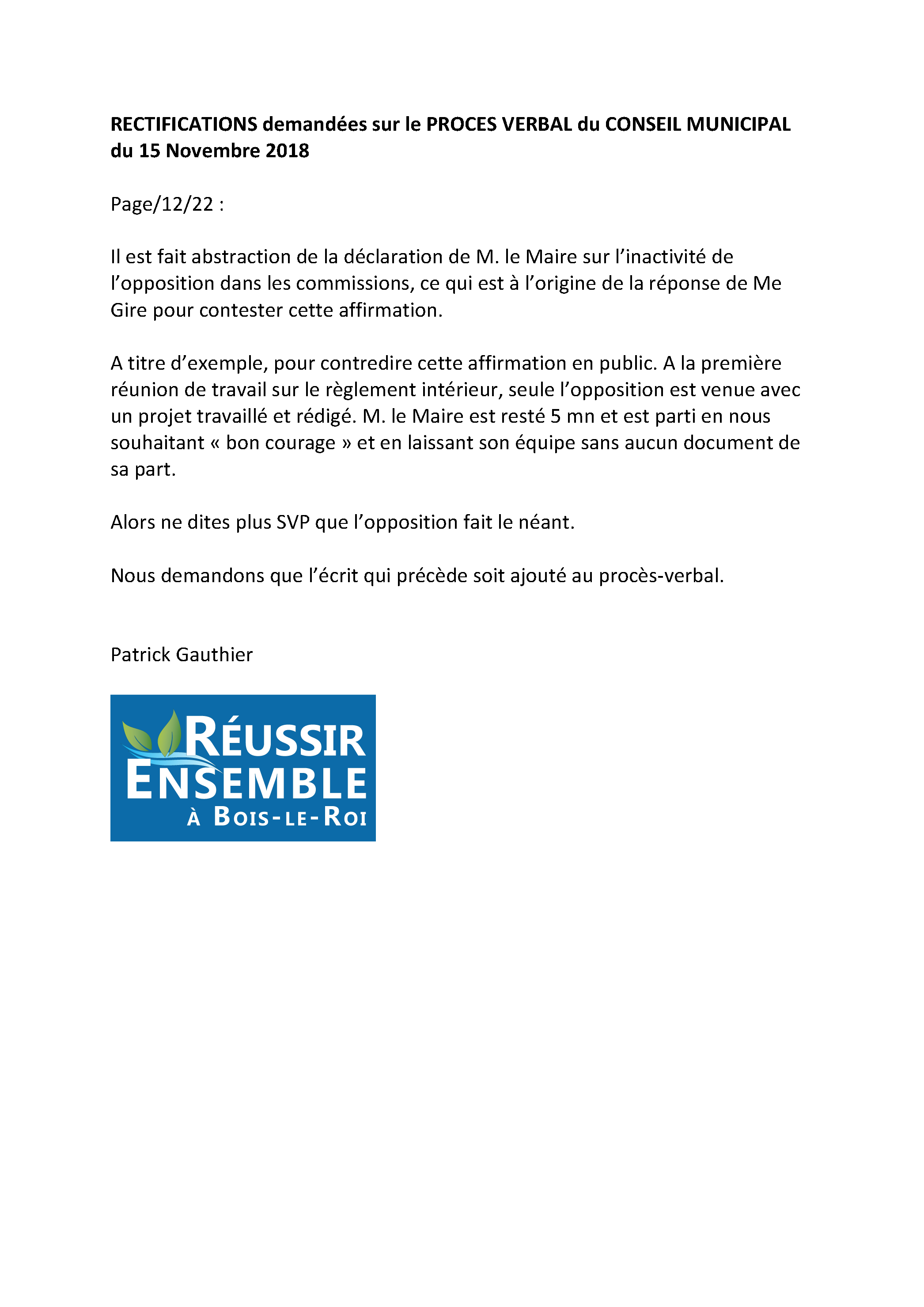 Travailler, proposer dans l’urgence ou l’ignorance est loin d’être optimal. Les enregistrements sonores des conseils municipaux sont détruits volontairement (Preuve n° 6) et les comptes rendus de ces derniers sont tronqués ou transformés. L’histoire de notre commune est écrite par M. le Maire qui décide et fait voter par sa majorité ce qui a existé et ce qui n’aura jamais existé (Preuve n° 1 et n° 2).